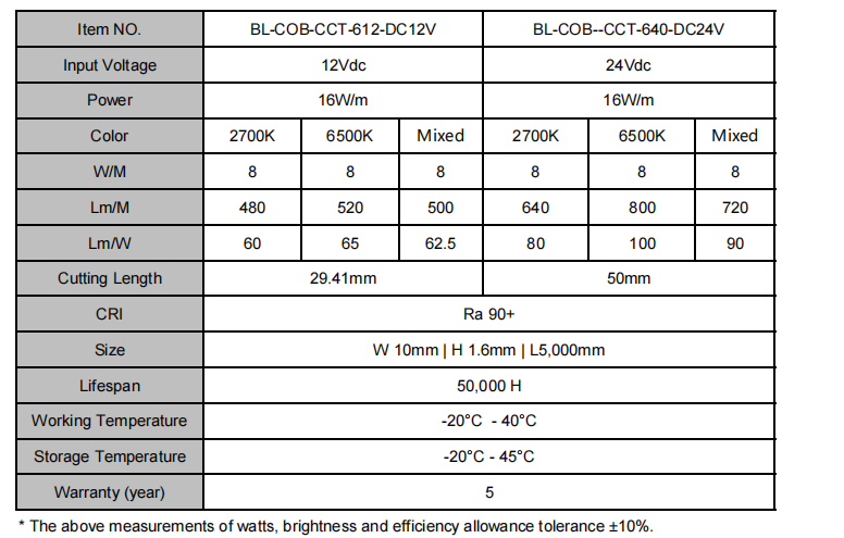 Item No.: BL-CCT-COB-612/640