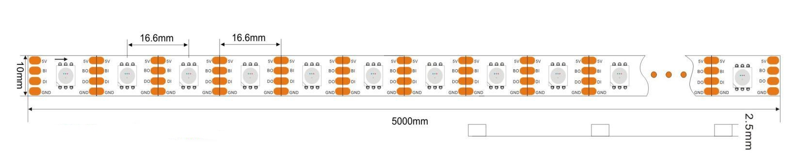Pixel 5050 RGB DC12V 60Leds/M